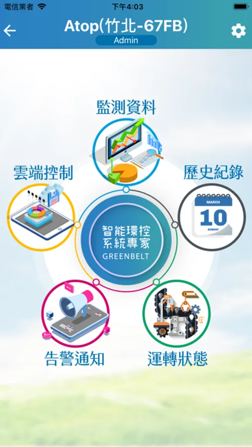 Greenbelt智能環控系統主要為新農業設施生產務聯網之構建(感測層、網路層、雲端服務層及應用層等),近一步了解農業設施內、外之生長環境、施肥、施藥、病蟲害等之網路監測與監控。並以作物生長模式之大數據分析,此為作物生理及行銷管理互聯網系統。