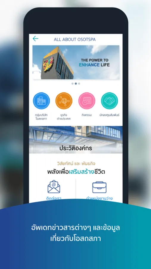 Entering the 128th year of our Osotspa Business Operations, we continue to move forward under the vision "The Power to Enhance Life". It's time to truly put the power in your hand with the OSP life mobile application.