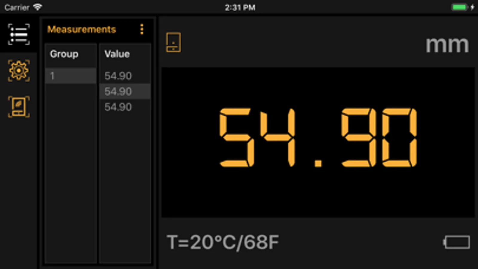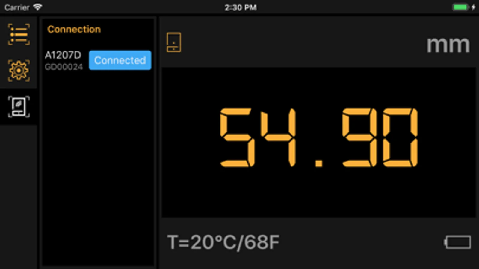 Application communicates via Bluetooth LE with the A1207D devices and allows to display instant measurements as well as save them.