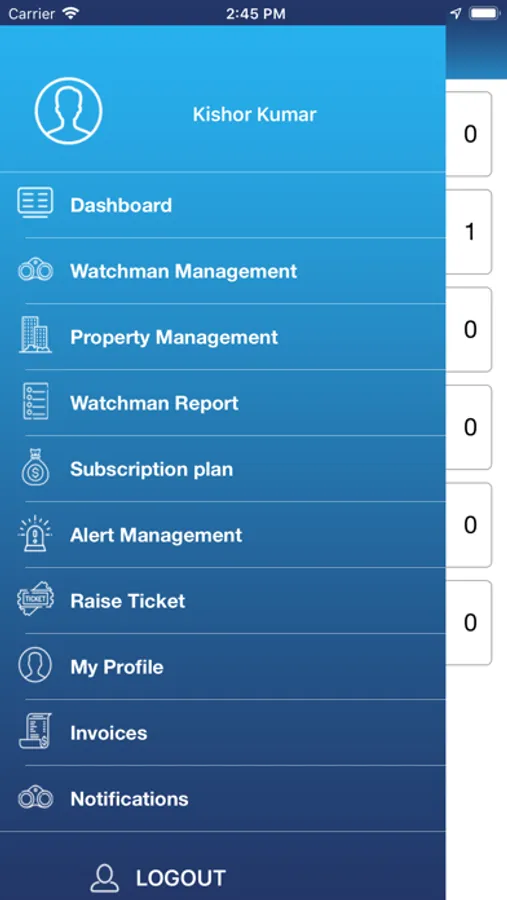 Watchman app comes loaded with a range of features. While the dashboard allows quick access to the prime facilities offered, the side menu offers more detailed access to all the features. The user gets features like property management, watchman management, watchman report, alert management, raise ticket, invoices, subscription management and my profile listed under the side menu for accessing anytime. The watchman app is, however, a bit different with a different set of modules, suitable to his profile, including shift start, scan QR code, send alert, raise ticket and my profile.
