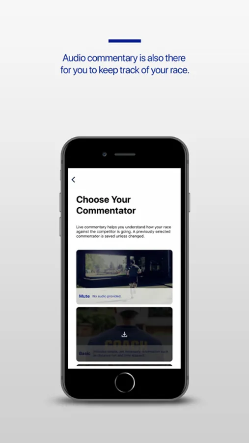 You are able to choose two audio options: Basic and Professional. Basic delivers running distance, running time, and distanc gap. Professional delivers “Basic” + speed and competing status.
