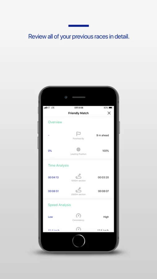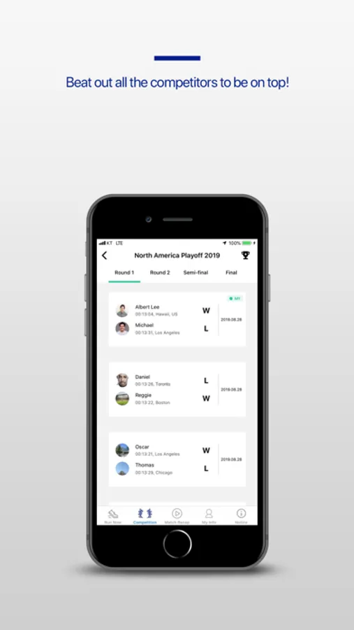 Practice is also a part of winning. Try frequent friendly races with runners from all over the world to make yourself a better runner. RunToWin automatically matches you with a competitors whose record is close to your best record.