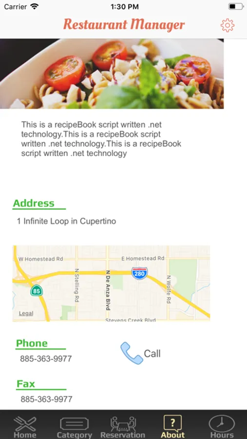 This is a restaurant management system offering you the Menu of the restaurant with the photos and dish types