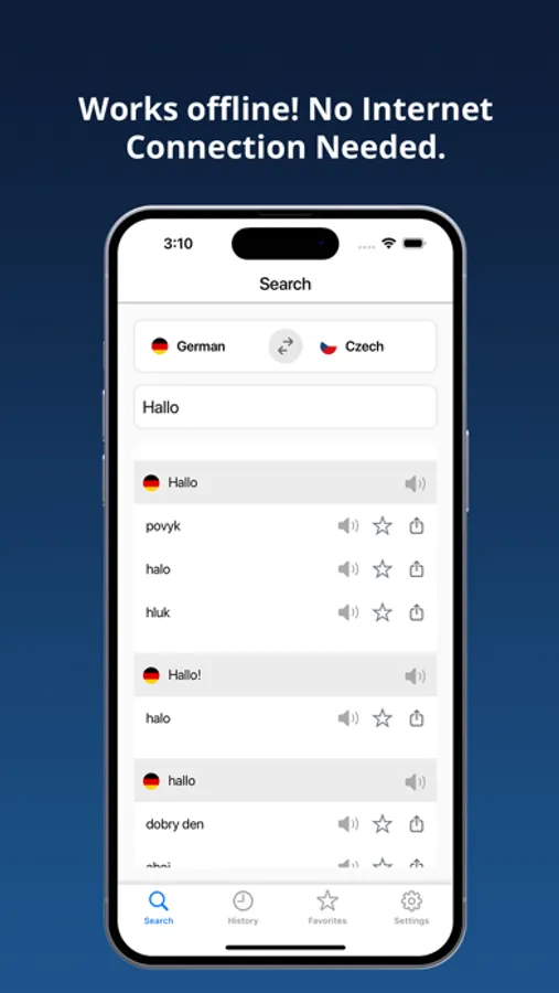 * Works offline! No Internet connection needed, the perfect translator for your trips, your studies, or when no data connection is available.