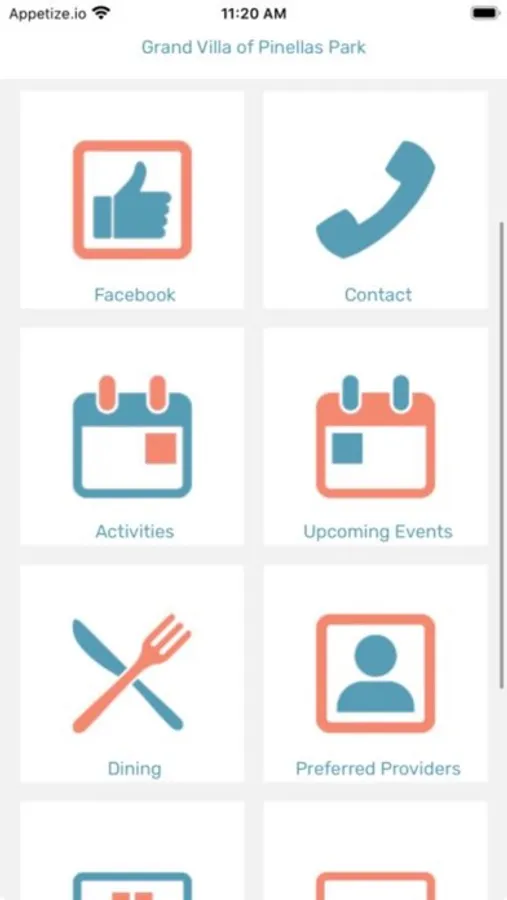 Our interactive phone app allows families to stay in constant contact with Grand Villa of Pinellas Park and always know what's going on in the community. App includes: Pictures, Photos, Events, Newsletter, Menu, Contacts, Feedback, and more!