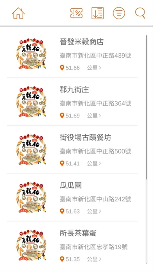 3.店家/景點資訊將可選擇距離遠近、分類等來查看店家或店家。