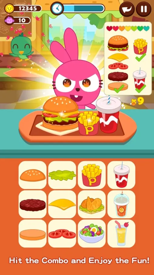 This game is easy to operate, click, click, click! That’s how you make a burger! Continuous operation without errors will unlock the combo mode! Under combo mode you can earn more coins! With more coins you could buy cute clothes for your business partners. There are more than 30 sets of cute outfits for your choice! As levels go up, more ingredients and food will be unlocked, and the orders will become complicated, too! Try to complete the achievements and tasks to get more rewards!