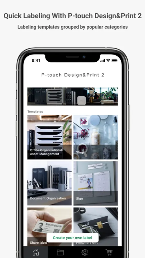 P-touch Design&Print2 is a free application that enables you to design labels on your iOS device (iPhone/iPod touch/iPad*) and print them via Bluetooth® using your Brother label printer.