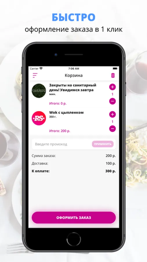 Скачивайте наше приложение, оформляйте заказ и наслаждайтесь любимой едой, где бы Вы ни были! Приятного аппетита!