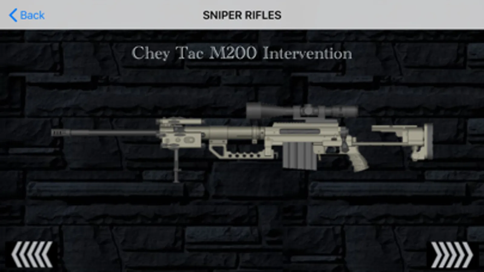 Chey Tac M200 Intervention, M21 Sniper Rifle, Walther WA 2000, PGM Hecate II, Steyr Scout, Stoner Rifle-25, Heckler & Koch PSG1, DSR-50, Ballista.