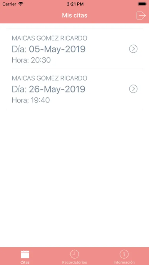 - Recibir avisos de tus citas una semana, un día y una hora antes.