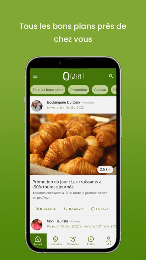 Tous les jours, nos commerçants partenaires (boulangerie, épicerie, fleuriste, boucherie, maraîcher, traiteur, restaurants, coiffeurs, petits magasins, etc.) vous proposent leurs produits en date courte à prix réduit, bons plans, fins de séries, actus, évènements...