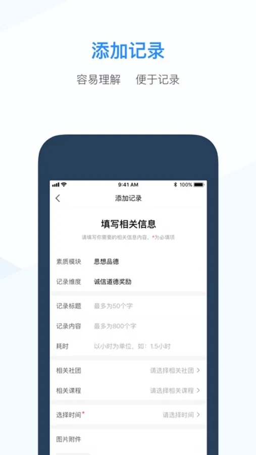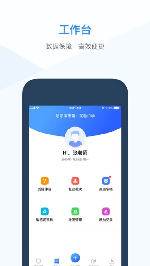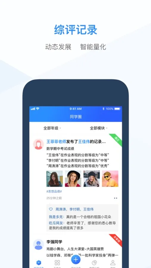 综评教师端提供了基于手机操作的综合素质评价系统应用。通过APP,老师可以快速记录学生日常行为记录,处理异常数据和管理综评相关工作项。教师端功能简单明了,为教师提供全面而又快捷的综合素质评价系统应用体验,是整个综合素质评价系统重要一端。