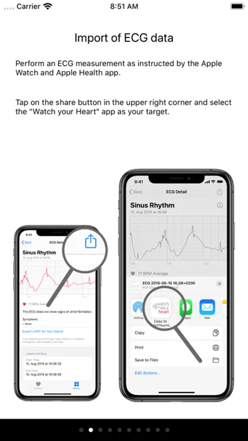 Watch your Heart is an app for further viewing ECG data created with the Apple Watch of the Withings ECG Move Smartwatch and copied from the Apple Health App or with the Withings Health Mate API.