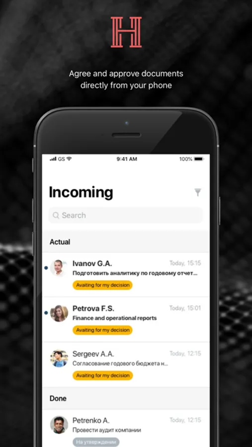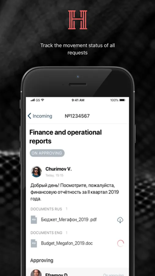 -take part in process of documents approval, view all files from the mobile device, make decisions (to approve or reject a document package)
