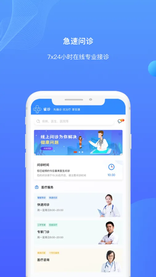 银川雀诊致力于打造高效率、低成本的在线咨询服务,促进区域内的业务协同和生态互联,构建分级诊疗服务。线上方便病人就是简单的问题不需要到医院,在网上就可以进行,满足病人多元化的需求。