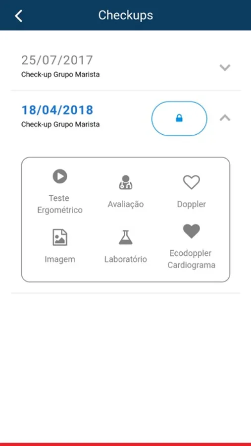 Visualização de exames de laboratório, avaliações médicas e "book" completo do Checkup realizado pelo executivo no Hospital Marcelino Champagnat.