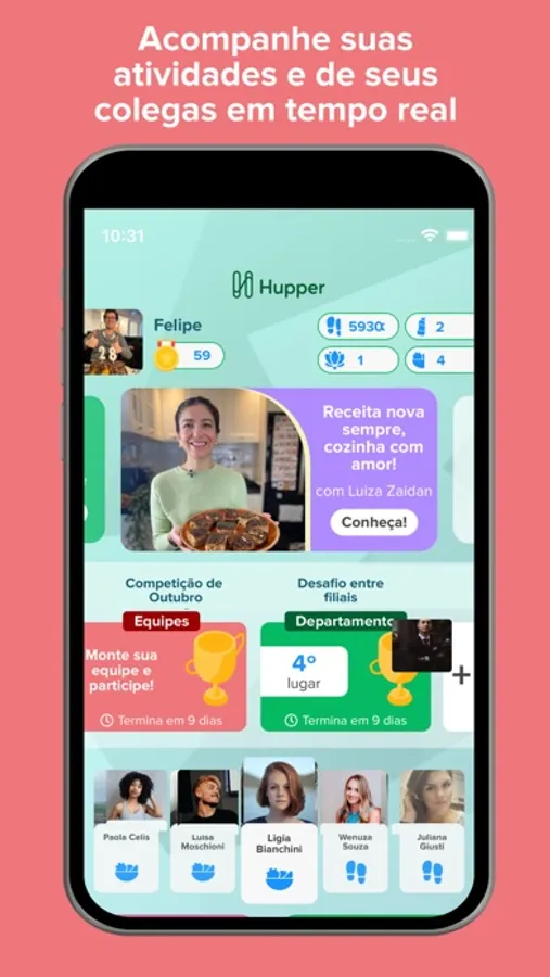Engaje os colaboradores na adoção de hábitos saudáveis a partir de conquistas, desafios e competições entre colaboradores de toda a empresa.