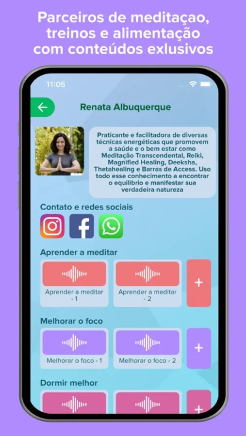 Meditações e técnicas de relaxamento guiadas por áudio para diminuição de stress, ansiedade, aumento do foco e ajuda para dormir.