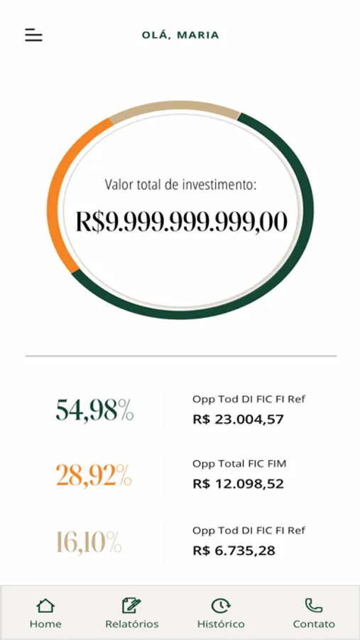 · Acompanhe diariamente a evolução de seus investimentos de forma segura e dinâmica