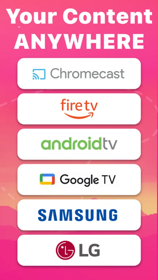 Supported devices include streaming devices such as Google Chromecast, Amazon Fire TV, Android TV, and many more.