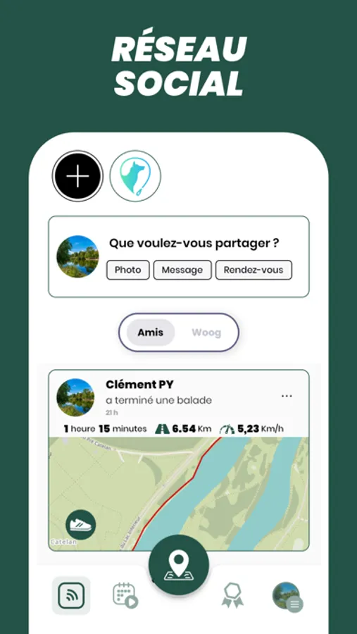 - Réseau social : Découvrez les messages, photos, promenades de la communauté Woog et de vos amis ;