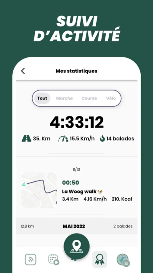 - Statistiques de balades : Vos sorties sont enregistrées, vous pouvez retrouver toutes vos statistiques et ceux de votre chien ;