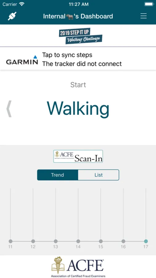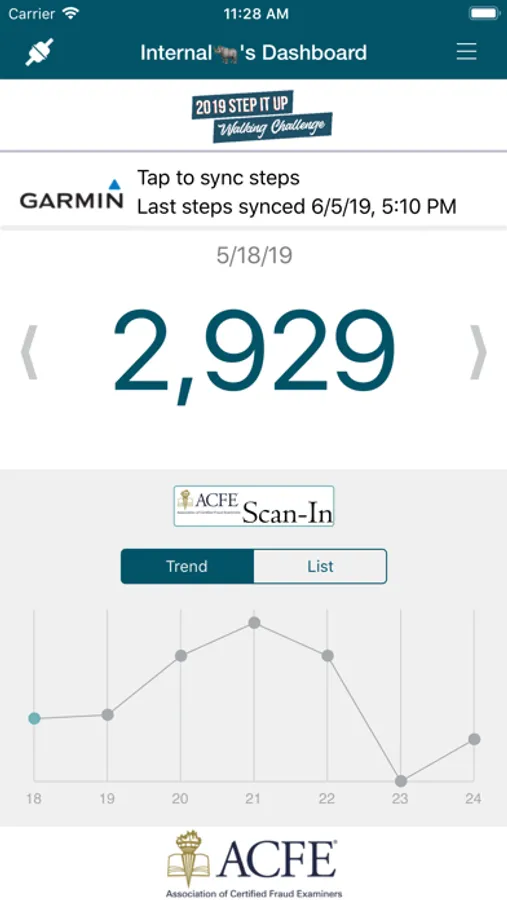 App supporting the Step It Up Walking Challenge at the 30th Annual ACFE Global Conference in Austin, TX June 23 - 28, 2019. The Challenge encourages event attendees to engage in healthy activities and some friendly competition. The app supports step data from Fitbit, Garmin, and, via our integration with the Apple Health App, step data from Apple Watch and the step tracker integrated into your iPhone.