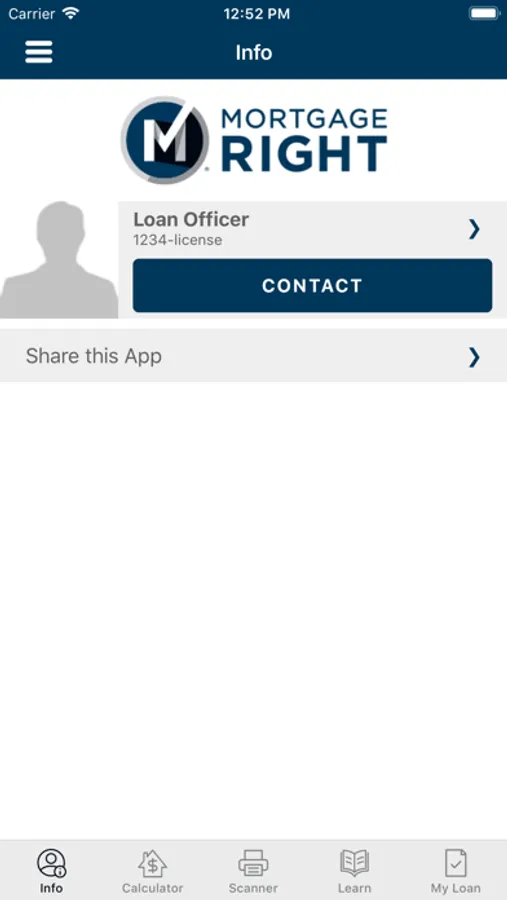 • Easily access contact information for your MortgageRight Loan Officer and real estate agent and share this information with your family and friends.