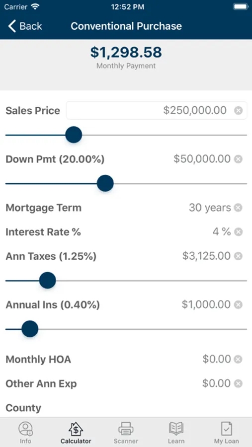 The calculations provided by the MortgageRight Now app are useful in giving you an idea of what homeownership might mean for you. However, please be sure to contact your MortgageRight Loan Officer for a customized solution tailored to your specific financial situation, needs, and goals. Your Loan Officer can also assist you with any questions you have about your loan and the loan approval process.