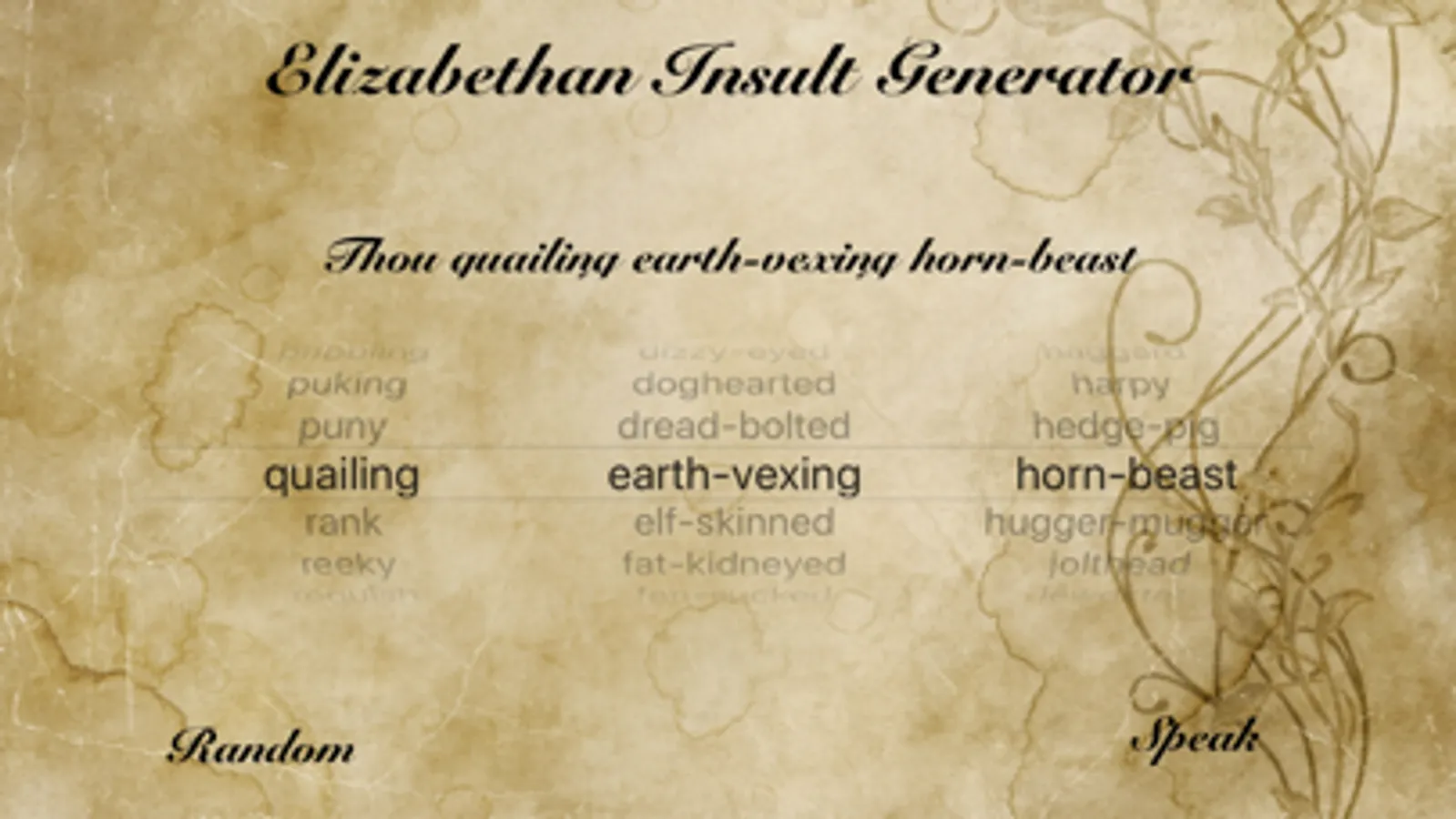 An improved Elizabethan Insult Generator with slot machine style pickers and speech synthesis.