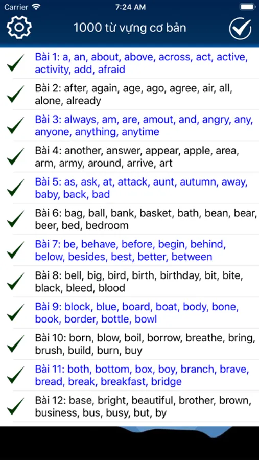 - Học từ vựng cơ bản theo các chủ đề được phân chia khoa học, dễ nhớ.
