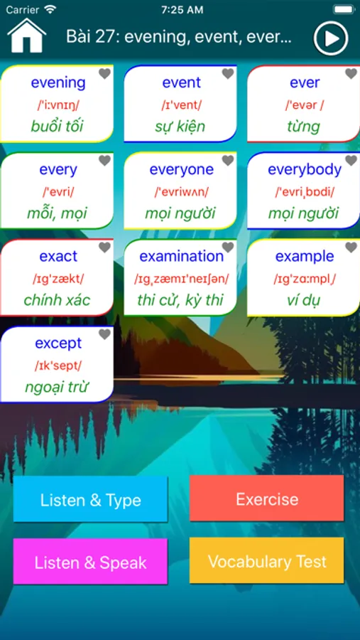 # Học Từ Vựng Tiếng Anh 123 là ứng dụng tuyệt vời cho việc tự học, bổ sung ôn lại kiến thức, mở rộng vốn từ vựng và luyện tập thêm 4 kỹ năng nghe nói đọc viết ở mọi trình độ.