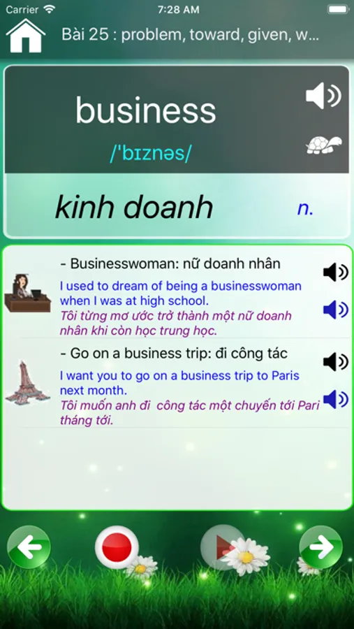 # Bạn có thể chọn giáo trình phù hợp để học, ghi nhớ, ôn tập lại và hoàn thành các giáo trình một cách hoàn toàn chủ động. 100% từ vựng và các mẫu câu được ghi âm chuẩn bởi các giáo viên bản ngữ ( Anh, Mỹ).