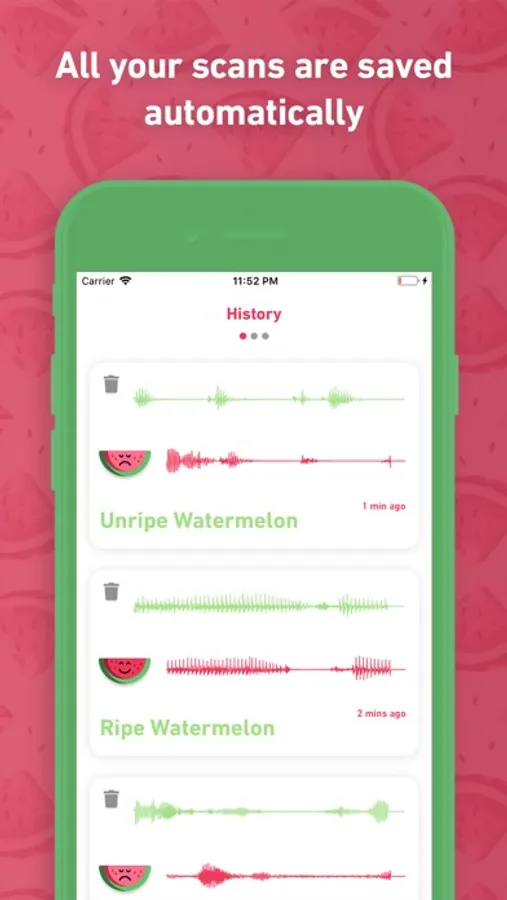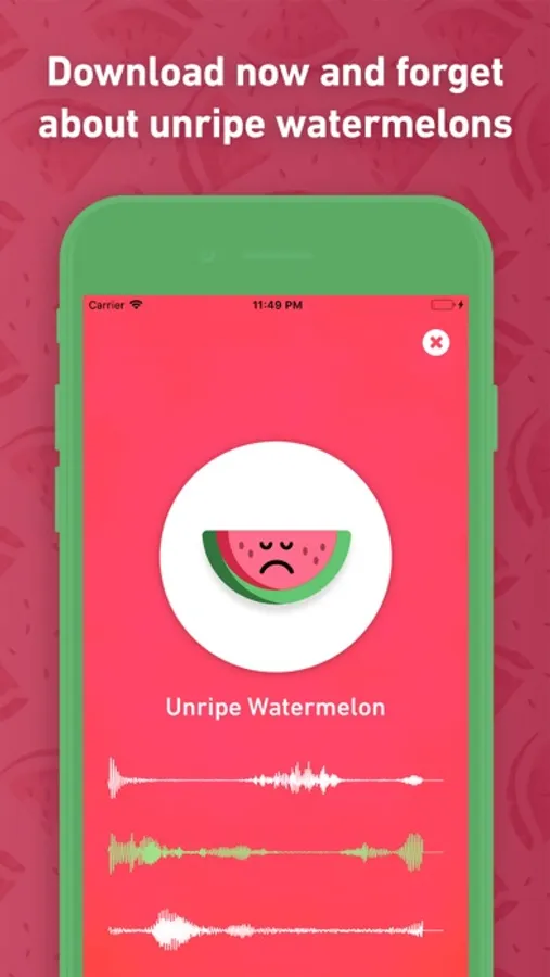 Do you always waste money on unripe watermelons? Hah! It's 2019 and everything has been easy: just install the app and thump the watermelon, and the magic will happen. The app uses complex algorithms that analyze the sound frequency of a watermelon, and detect, based on the sound, the ripeness of the watermelon. Additionally, the app contains several tips to help you choose the best ripe watermelon.