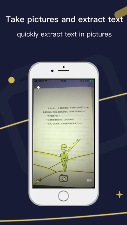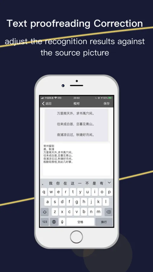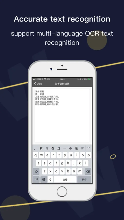 Intelligent OCR text recognition, mobile phones take paper documents, quickly extract text in pictures, the recognition accuracy can reach 98%, and it can recognize 16 languages including Chinese, English, Japanese, and Korean.