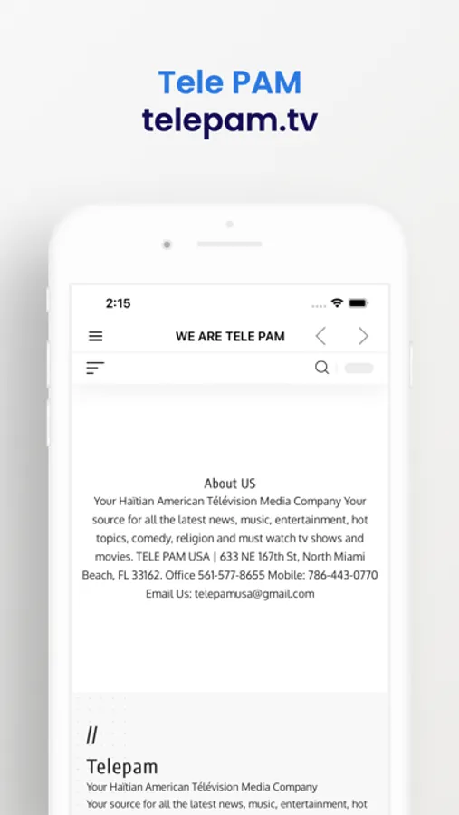 Tele Pam is an independent Community radio and television network serving the Haitian-American population in the US and internationally. The network has a production and operation facility located in the City of North Miami Beach. Herald by Media Personality and Influencer, DJ One several programs can be watched on various social platforms and television streaming applications. Tele Pam is the number one source of information for the community bringing content on Haitian-Creole, French, English and Spanish.