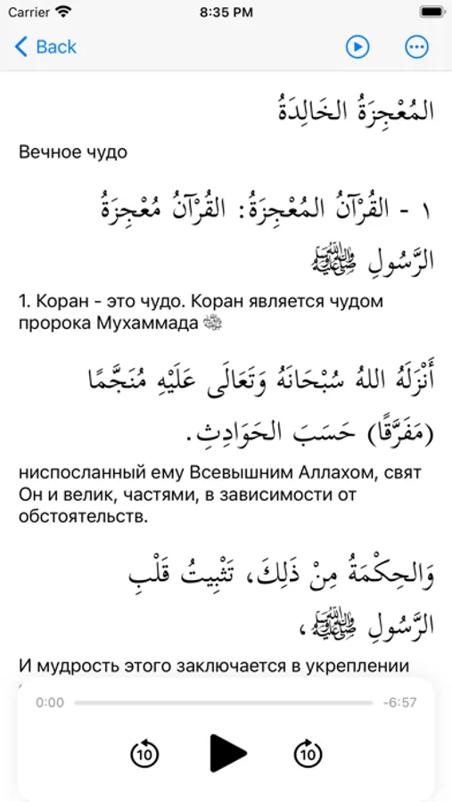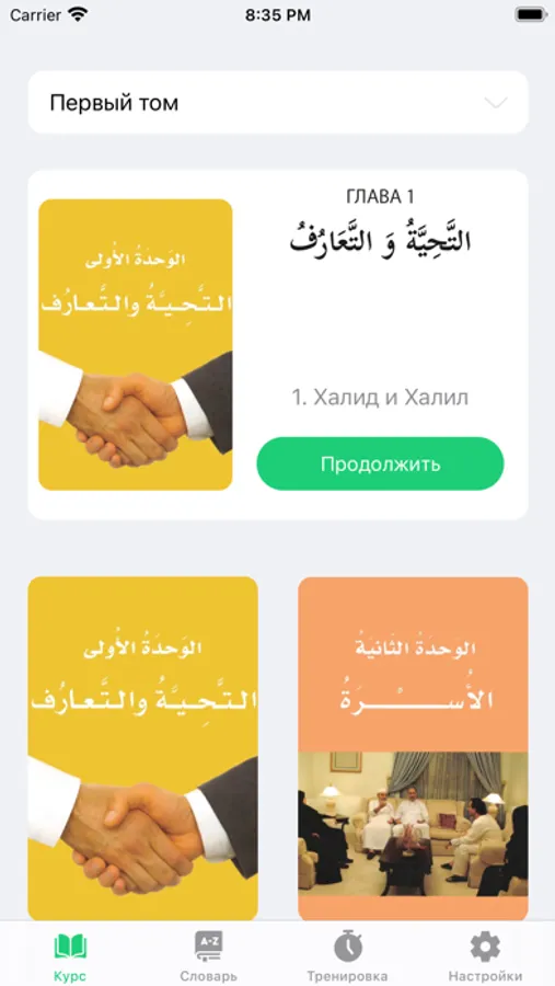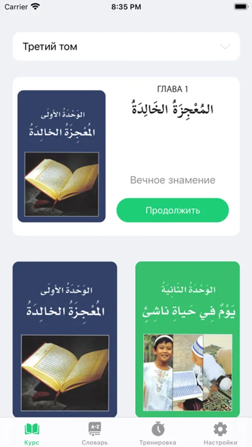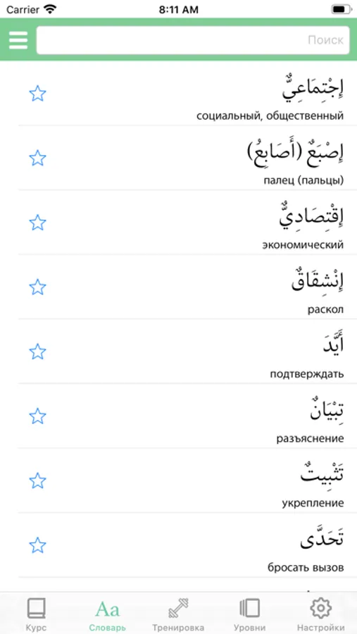 Each text includes a vocabulary list with new words found in that text. The words have audio and can be memorized through various exercises. Also, there is a general dictionary containing all words from the three books, featuring convenient search and the ability to add words to favorites for further study. If you can't find a needed word, you can add it in the "Added Words" section and learn it like all the other words.