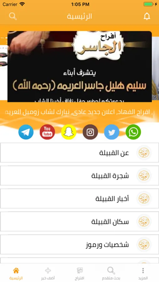 تطبيق العريمات - هو تطبيق ذكي يخدم أفراد العريمات من اخر اخبار العريمات وتحديد مكان سكان العريمات بكل المناطق والاستفاده من البحث عن هواتف ابناء القبيله المسجلين وحفظ اسماء ابناء القبيله بشجرة القبيله لسهولة التعرف على اسماء الأجداد وحفظ نسب القبيله كذالك التعرف على شخصيات ورموز القبيله من مناصب وحفظ قصائد القبيله وتراثها ونشره كذالك اجتماع القبيله وأماكن الاجتماعات السنويه والأعياد كذالك للاستفاده من صندوق القبيله عن بعد وخدمة الجميع والتوضيح الظاهر للجميع