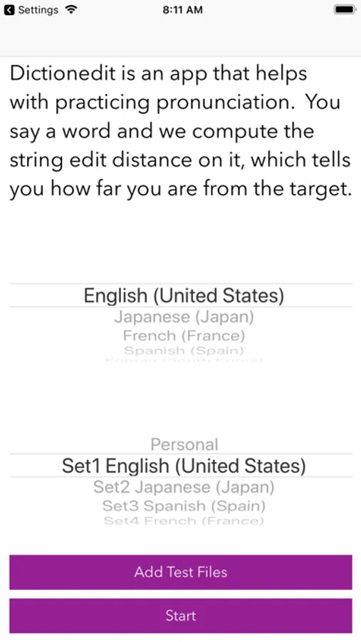 Dictionedit comes with files for practicing English, Japanese, French, and Spanish. It is also possible to generate your own personal list. The program can transcribe any language that siri can recognize (e.g., Chinese, Hungarian, Hebrew, Thai, Turkish)