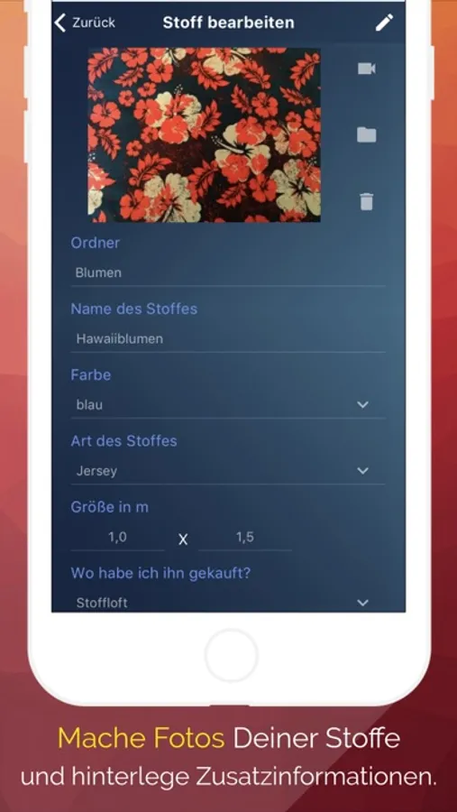 Diese App kann Dir dabei helfen, wieder Ordnung in Dein Stofflager zu bringen. Mache Fotos Deiner Stoffe, gib die Namen der Stoffe an und wo Du sie gekauft und jetzt abgelegt hast. Solltest Du später nach einem speziellen Stoff suchen, dann kann Dir die App genau sagen, wo Du den Stoff wiederfindest.