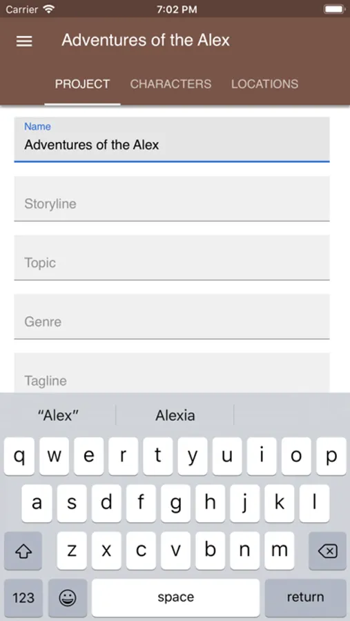 - 3 characters, 3 locations, 3 stories, 3 worlds per project