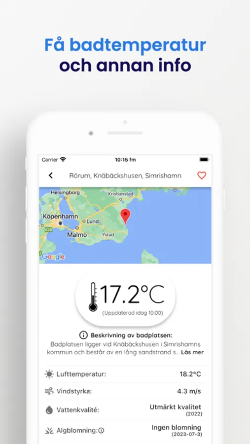 • Lägg till dina badplatser till dina favoriter.