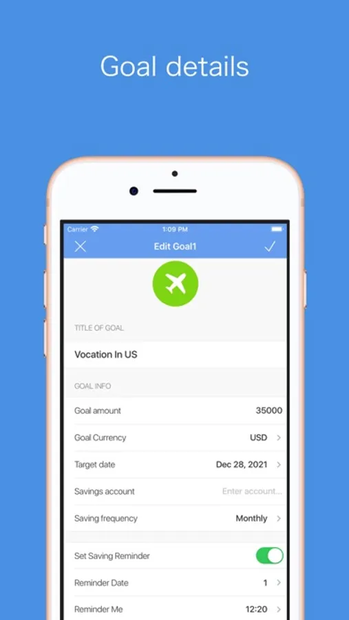 Are you saving money for a new car, holiday or putting money aside for retirement? Check out the app, it can help you to setup goal, monitor progress and motivate you to move forward until you archive your goal.