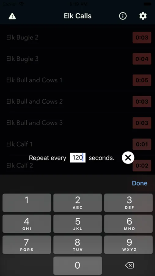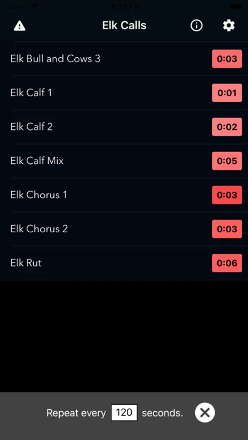 You must consult your states laws and regulations prior to the use of any electronic game calling equipment, including this application, specifically for elk hunting.
