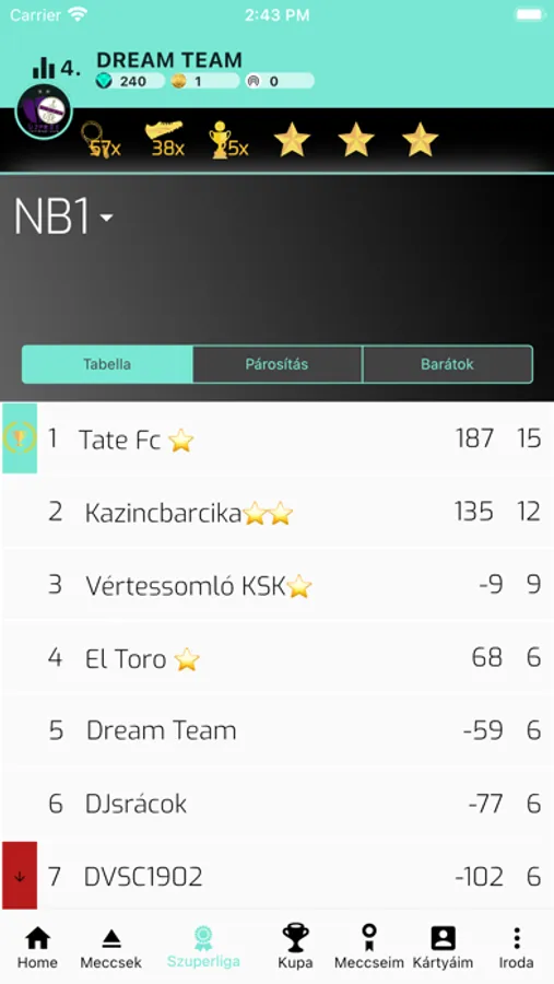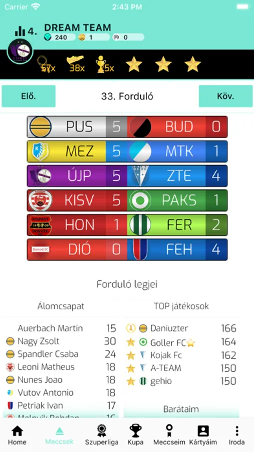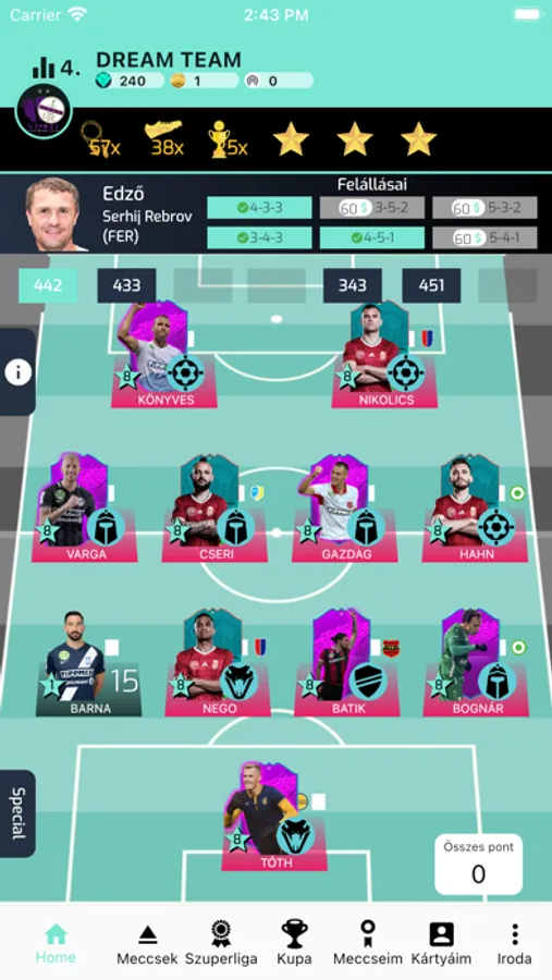 • Állítsd össze legjobb csapatodat a rendelkezésedre álló kártyáidból.
