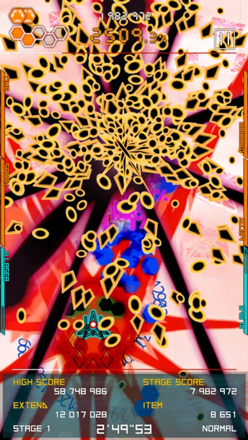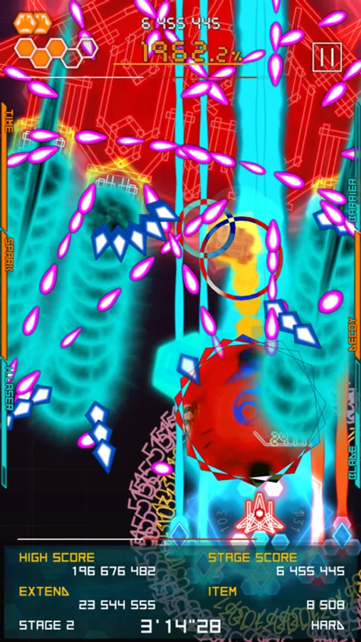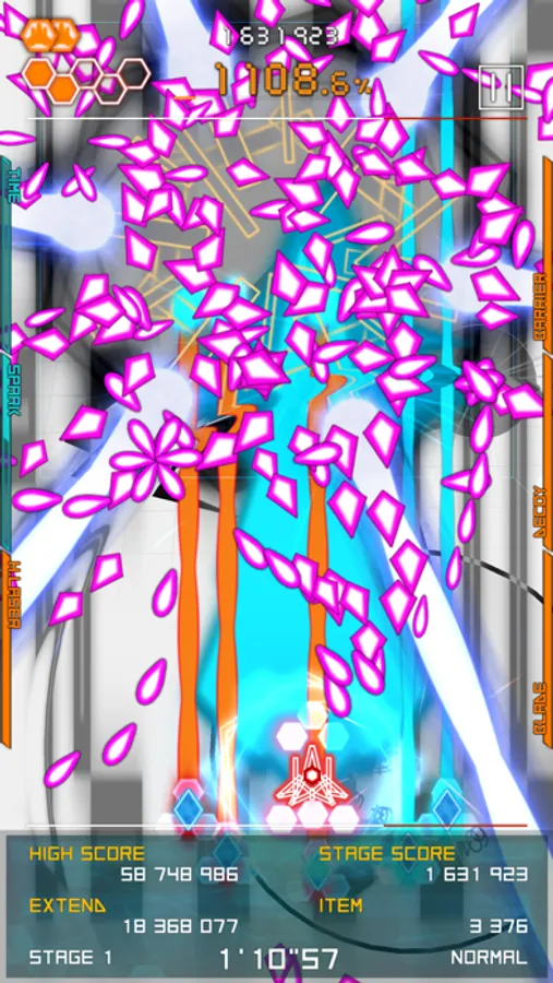 Bullet hell shmup with special weapons.