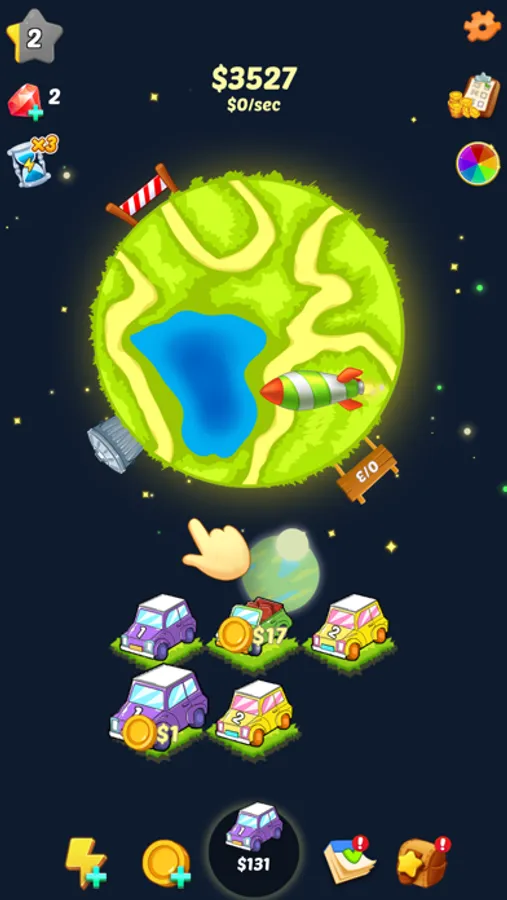 Every so often, you’ll be gifted with a car. The main objective of game is to fusion two cars low level to get another with higher level.