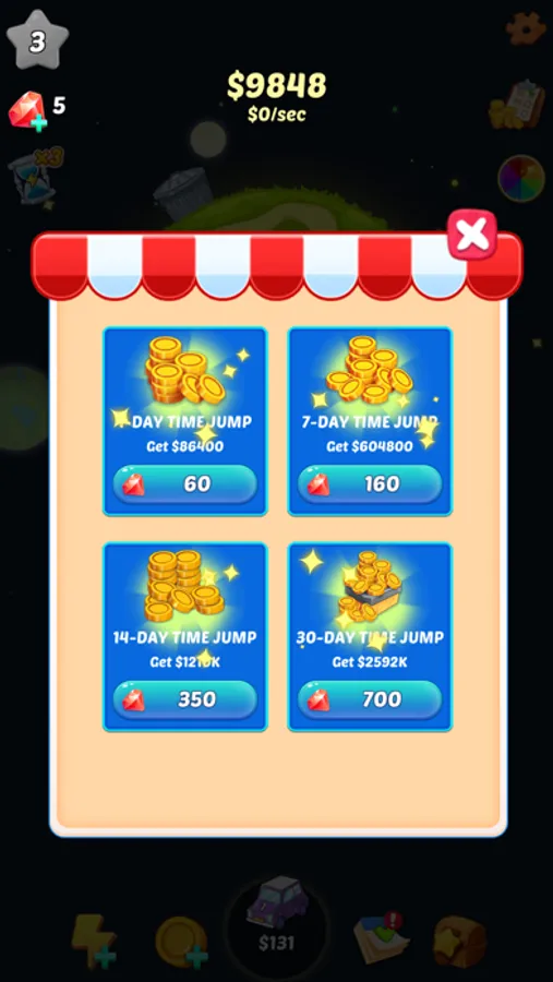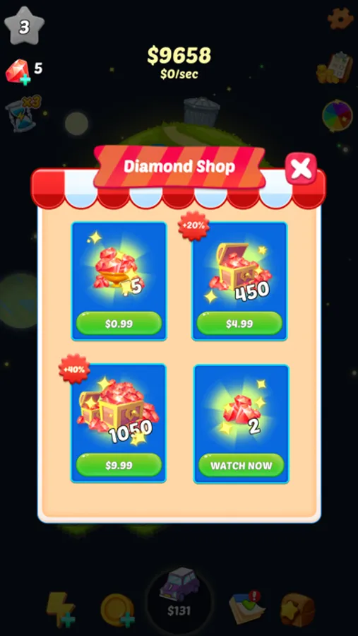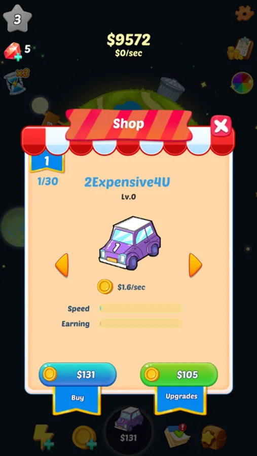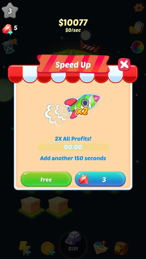 Upgrade cars or equipment to earn more coins.Speed up to fast earning money by diamonds