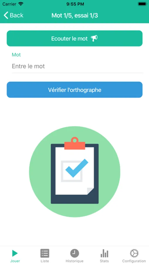 2 - L'enfant écrit le mot entendu (sur une feuille ou dans l'app)